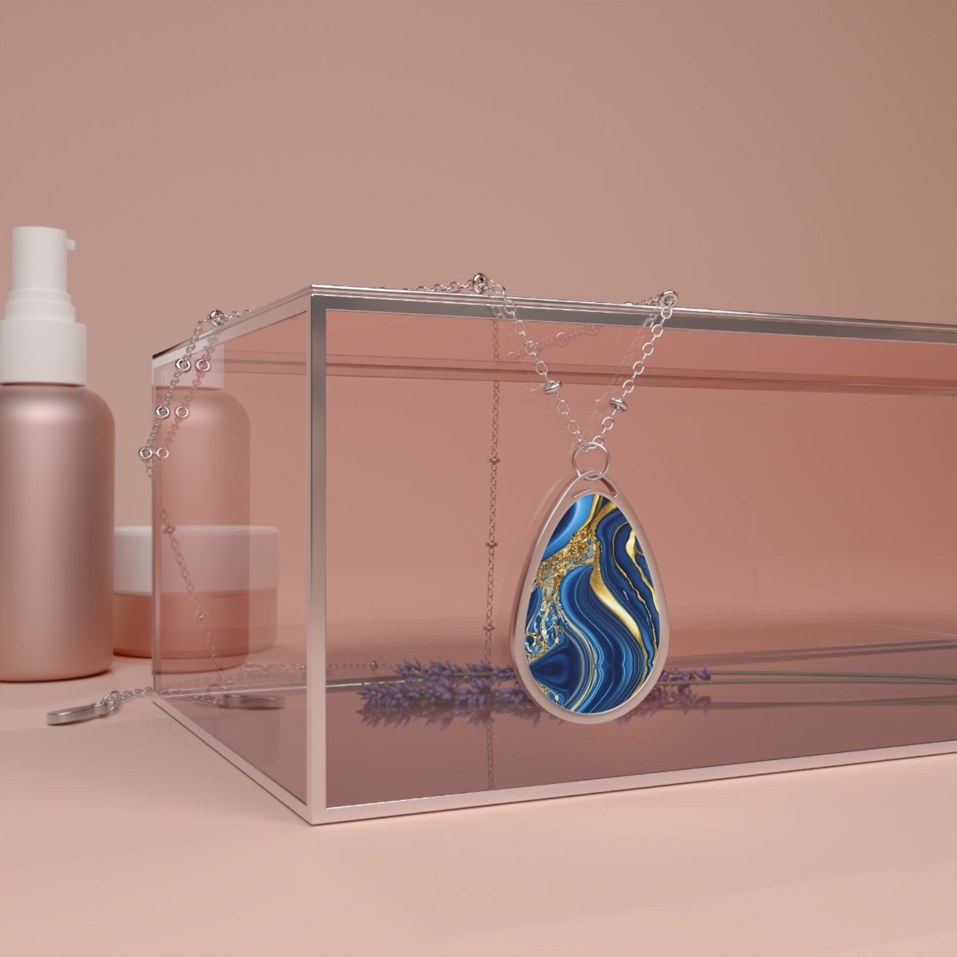 Royal Blue Gold Marble Print, Oval Pendant, Timeless Elegance and Mesmerising Design Necklace, Neckpiece | Royalty Subliminal Messaging
