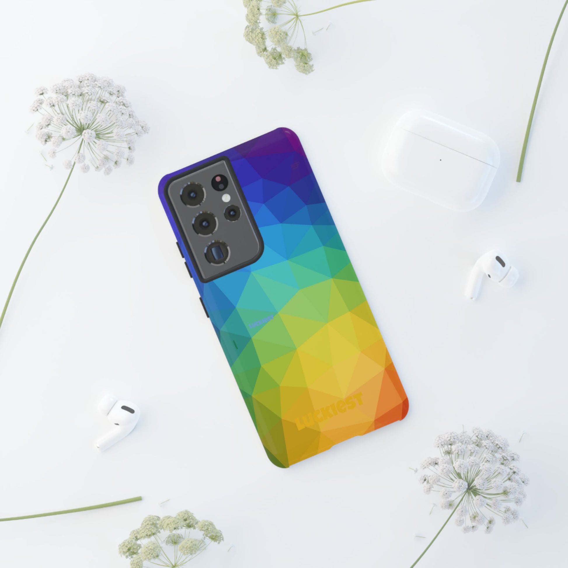 Introducing our Chromatic Geometric Phone Cover with a "luckiest person alive" subliminals, a sleek and modern accessory that combines vibrant colors with geometric patterns to elevate your smartphone style. This will bring you luck and positive energy.